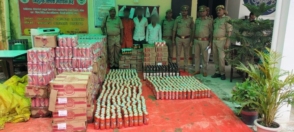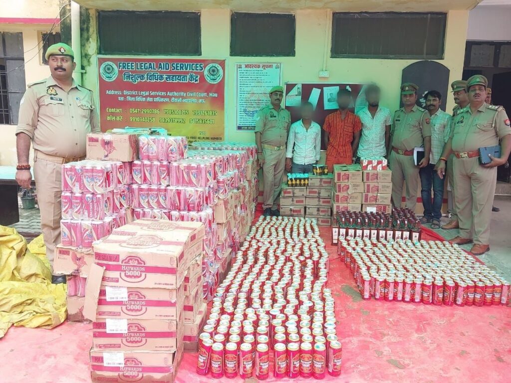 मऊ। पुलिस अधीक्षक जनपद मऊ इलामारन के निर्देशन में चलाए जा रहे अपराध व अवैध शराब तस्करी विरोधी अभियान के तहत दिनांक 28 जुलाई 2025 को पुलिस को बड़ी सफलता हाथ लगी। अपर पुलिस अधीक्षक महेश सिंह अत्रि के पर्यवेक्षण एवं क्षेत्राधिकारी घोसी जितेन्द्र सिंह के नेतृत्व में स्वाट, एसओजी, सर्विलांस व थाना कोपागंज की संयुक्त टीम ने तीन अन्तर्राज्यीय शातिर शराब तस्करों को गिरफ्तार कर भारी मात्रा में अंग्रेजी शराब व बीयर बरामद की।