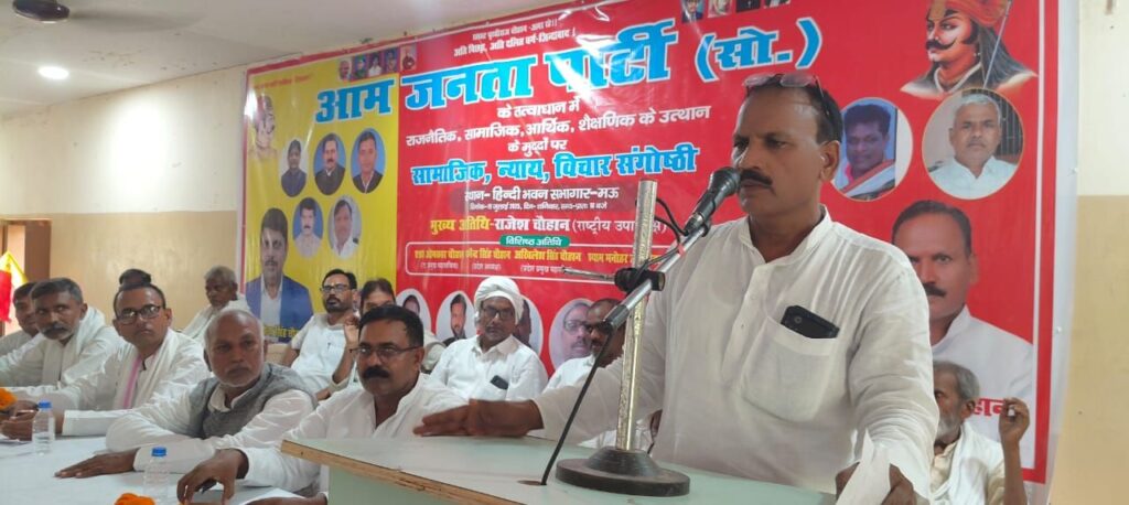 मऊ:  आम जनता पार्टी (सो0) के तत्वावधान में शनिवार को हिन्दी भवन, मऊ में एक भव्य संगोष्ठी का आयोजन किया गया, जिसमें चौहान समाज व अति पिछड़ा वर्ग के सामाजिक, शैक्षिक, आर्थिक और राजनैतिक उत्थान पर विस्तार से चर्चा की गई।