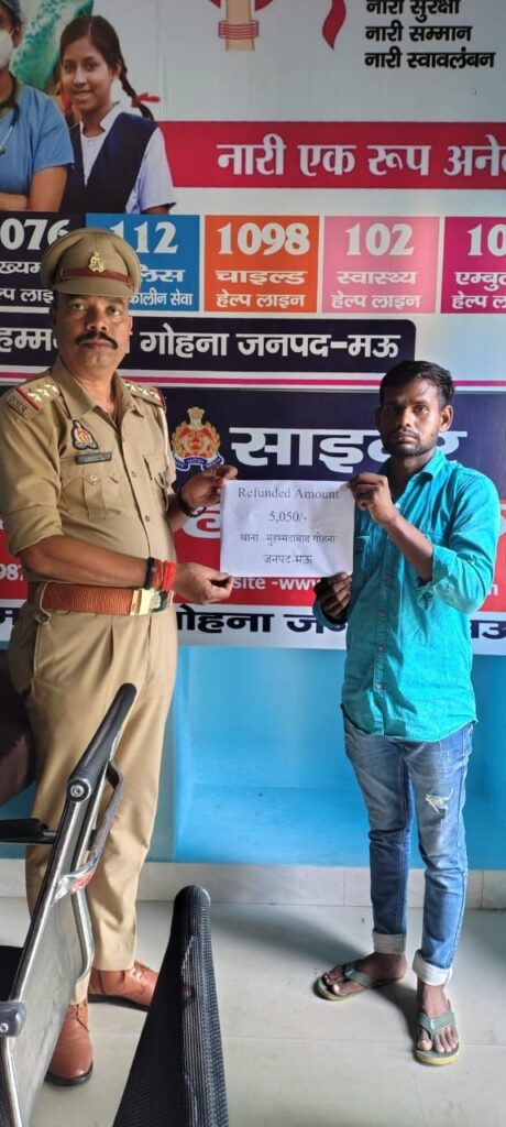 मऊ पुलिस की साइबर टीम ने कराया ऑनलाइन फ्रॉड का शिकार हुए व्यक्ति को वापस 5,050 रुपये