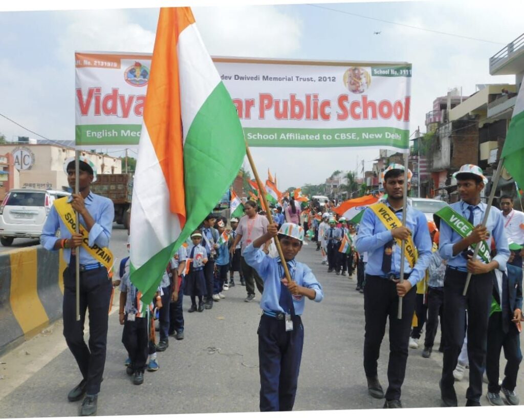 विद्या संस्कार पब्लिक स्कूल कौड़ियांकला के विद्यार्थियों ने स्वतंत्रता दिवस पर भारत माता की जयकारों के साथ अदलहाट बाजार में विशाल तिरंगा यात्रा और प्रभात फेरी निकाला।जिसे मुख्य अतिथि थाना प्रभारी निरीक्षक अमित कुमार मिश्रा व विद्यालय के चेयरमैन डॉ० नागेंद्र प्रसाद द्विवेदी ने झंडा फहरा कर तिरंगा यात्रा का आगाज किया।जिसमें बच्चों के नारों वंदे मातरम, इंकलाब जिंदाबाद से पूरा क्षेत्र गुंजायमान हो गया।