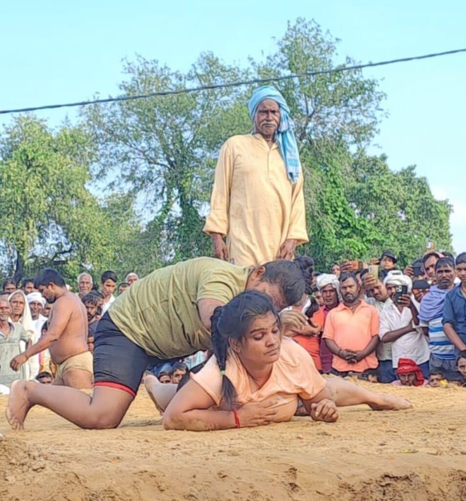 जमुई (मीरजापुर) विगत वर्षों की भांति इस वर्ष भी ग्राम सभा नकहरा में विराट कुश्ती दंगल प्रतियोगिता आयोजित किया गया। कार्यक्रम का शुभारंभ अखाड़े की पूजा के साथ किया गया। कुश्ती दंगल में लगभग 50 जोड़ी पहलवान ने अपना दमखम दिखाया। पहलवान अमित कुमार इनामी राशि 20000 तक बढ़ाई गई लेकिन कोई जोड़ तैयार न होने पर कुछ नगद राशि एवं अंगवस्त्र से सम्मानित किया गया। महिला पहलवानों की भी कुश्ती कराई गई। महिला पहलवान में रंजना दिल्ली से तथा ज्योति गाजीपुर के बीच कुश्ती कराया गया जिसमें दोनों पहलवान अपना दम खम दिखाते हुए बराबरी पर रही। अंकित पहलवान गाजीपुर शमशेर पहलवान कर्मनाशा बिहार के बीच कुश्ती में अंकित विजय रहे। रंजीत पहलवान गाजीपुर राजेश पहलवान डीएलडब्लू वाराणसी के बीच कुश्ती बराबरी पर रही। पहलवानों में रामबली सेमरी प्रियांशु सड़़सा व पवन हाजीपुर, अमन सड़सा व दिलीप हाजीपुर अनीस सैयदराजा तथा राजू सड़सा रोशन भगौती देई के बीच कुश्ती बराबरी पर रही। निर्णायक में जय सिंह पूर्व प्रधान एवं दशरथ सिंह पहलवान रहे। संचालन रामबली सिंह व फणिंद्र श्रीवास्तव ने किया। संयोजक मंडल में जय सिंह (पूर्व प्रधान), रविंद्र प्रताप सिंह, रामबली सिंह, अभिषेक कुमार (ग्राम प्रधान नकहरा), बबुआ सिंह, जोखू सिंह सेवानिवृत अध्यापक, कमला शंकर सिंह महेंद्र कुमार नीरज सिंह दशरथ सिंह पहलवान के साथ सर्वेश सिंह (ग्राम प्रधान कैलहट), निर्मल सिंह (प्रधान पचेवरा), रमेश सिंह स्वामीजी उपस्थित रहे। ग्राम प्रधान नकहरा अभिषेक कुमार ने आएं अतिथियों का माल्यार्पण व अंगवस्त्रम से स्वागत किया। व्यवस्था में चंद्र प्रकाश सिंह, संजय सिंह, बमबम, मोहित के साथ गांव के अन्य लोग रहे।