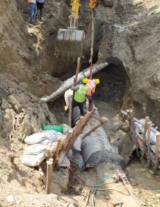 ग्रामीणों और स्थानीय जनप्रतिनिधियों का आरोप है कि PWD द्वारा सड़क चौड़ीकरण के दौरान ठेकेदार ने बिना किसी योजना के सीवर पाइप लाइन को तोड़ दिया, जिससे बारिश का पानी अब नाली से निकलने की बजाय सड़क पर ही जमा हो रहा है।