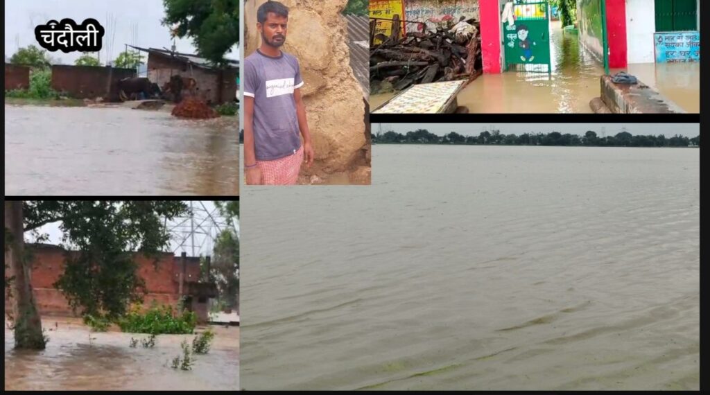 चंदौली जनपद सहीत सोनभद्र मिर्जापुर पहाड़ी क्षेत्रों में पिछले कुछ दिनों से लगातार हो रही भारी बारिश ने जनजीवन अस्त-व्यस्त कर दिया है। खासकर चंद्रप्रभा नदी का जलस्तर खतरनाक रूप से बढ़ गया है और वह रौद्र रूप धारण कर चुकी है। नदी का पानी बबुरी थाना क्षेत्र के आधा दर्जन से अधिक गांवों में घुस गया है, जिससे बाढ़ जैसे हालात बन गए हैं।