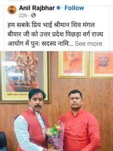 Chandauli news,उत्तर प्रदेश पिछड़ा वर्ग राज्य आयोग के तीसरी बार सदस्य बने शिवमंगल बीयार, जनपद में खुशी की लहर