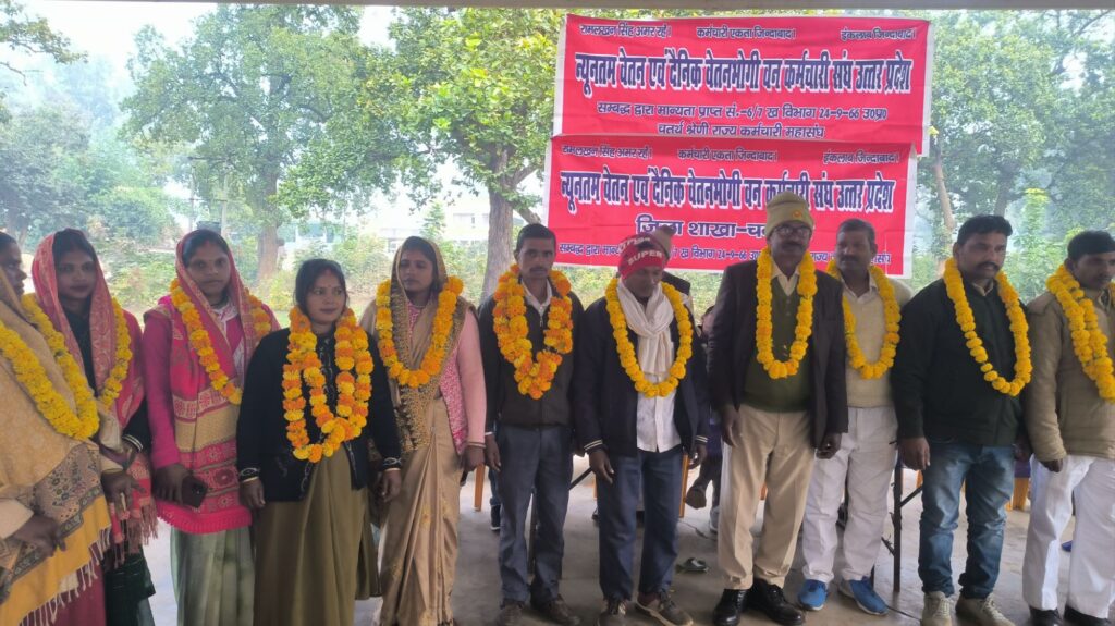 सम्मान समारोह के दौरान कर्मचारियों में खासा उत्साह देखने को मिला। “इंकलाब जिंदाबाद”, “कर्मचारी एकता जिंदाबाद” और “जोर-जुल्म की टक्कर में संघर्ष हमारा नारा है” जैसे नारों से पूरा परिसर गूंज उठा। कार्यक्रम का संचालन जिला संरक्षक राम रतन ने किया। जिलाध्यक्ष द्वारिका मोदनवाल ने प्रदेश स्तर के पदाधिकारियों को माला पहनाकर सम्मानित किया, जबकि प्रदेश संरक्षक त्रिवेणी प्रसाद खरवार ने जिला स्तरीय पदाधिकारियों का सम्मान किया। महिला पदाधिकारियों का सम्मान जिला संयुक्त मंत्री मंजू देवी द्वारा किया गया। प्रदेश संरक्षक त्रिवेणी प्रसाद खरवार ने अपने संबोधन में कहा कि न्यूनतम वेतन और दैनिक वेतन भोगी वन कर्मचारी वन विभाग की रीढ़ हैं। दुर्गम और जोखिम भरे जंगलों में दिन-रात सेवा देने के बावजूद उन्हें आज भी स्थायित्व, उचित वेतन और सामाजिक सुरक्षा से वंचित रखा गया है। उन्होंने स्पष्ट किया कि जब तक कर्मचारियों को उनका हक नहीं मिलेगा, संगठन संघर्ष करता रहेगा।