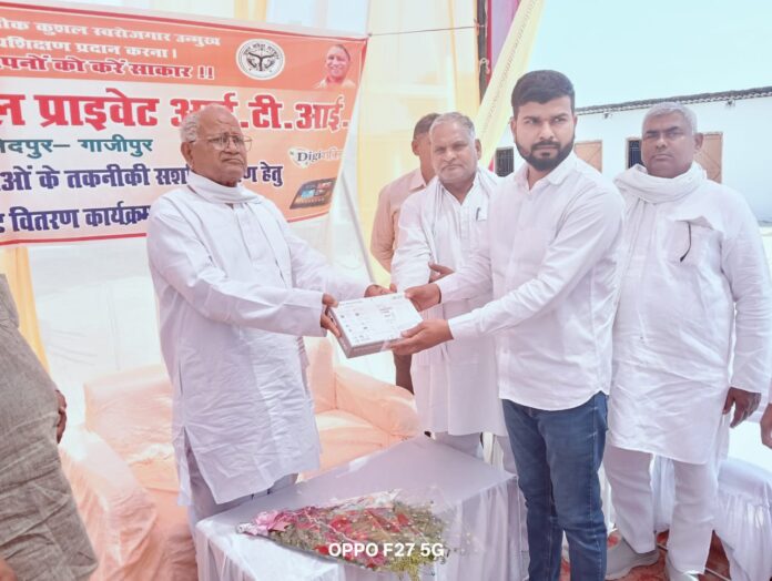 खानपुर क्षेत्र के सौना स्थित श्री रामसूरत नेशनल प्राइवेट आई.टी.आई सौंना सैदपुर गाज़ीपुर में छात्र-छात्राओं को टैबलेट किया गया वितरण, टैबलेट पाकर छात्र छात्राओं के चेहरे खिल उठे।यह योजना मुख्यमंत्री योगी आदित्यनाथ जी के नेतृत्व में युवाओं को तकनीकी रूप से सशक्त बनाने और डिजिटल युग में शिक्षा को सरल व सुलभ बनाने का एक क्रांतिकारी कदम है। इस कार्यक्रम से विद्यार्थियों को न केवल पढ़ाई में सहूलियत मिलेगी, बल्कि उन्हें डिजिटल स्किल्स और तकनीकी ज्ञान में भी बढ़त मिलेगी। यह देखकर गर्व होता है कि हमारे राज्य के युवा इस सुविधा का उपयोग करके अपने भविष्य को उज्ज्वल बनाने की दिशा में कदम बढ़ा रहे हैं।“डिजिटल शिक्षा का यह कदम, आत्मनिर्भर उत्तर प्रदेश की ओर एक और सफल प्रयास है।”इस उत्कृष्ट पहल के लिए सरकार का आभार और विद्यार्थियों के उज्ज्वल भविष्य की शुभकामनाएँ दी। इस मौके पर मुख्य अथिति श्रीं रमाशंकर सिंह जी(काठू सिंह) पूर्व ब्लॉक प्रमुख सैदपुर, लेखपाल विजय यादव (मुन्ना), प्रबंधक कमला सिंह यादव, सुभाष सिंह यादव, नंदलाल सिंह यादव, अध्यापक अरविंद सर, दुर्गा यादव, अजीत यादव, विकास यादव, मुसाफिर सिंह, दीपक कुमार, छात्र प्रियंज्य सिंह, प्रियांशु यादव, विशाल यादव, सतीश प्रजापति , विवेक सिंह यादव राकेश कुमार कुशवाहा उपस्थित रहे।।