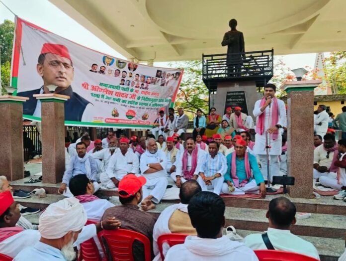 गाजीपुर। गुरुवार को पार्टी के राष्ट्रीय अध्यक्ष अखिलेश यादव के आह्वान पर सांसद राम जी लाल सुमन के ऊपर हुए जानलेवा हमले के विरोध में समाजवादी पार्टी ने जिलाध्यक्ष गोपाल यादव के नेतृत्व में सरजू पांडे पार्क में धरना देकर अपना विरोध प्रदर्शित किया।